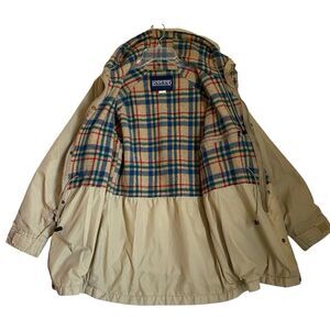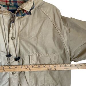 Vintage Land’s End Hooded Jacket Parka Mens S Beige Wool Blanket Lined Made USA