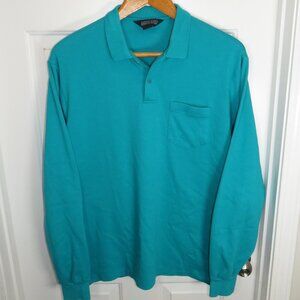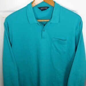 Vintage Lands' End Men's LG (42-44) Polo Shirt L/S Pocket Made in USA Teal