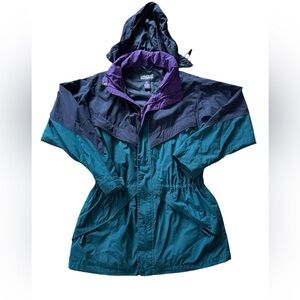 Vintage Lands End Nylon Full Zip Jacket Men Size Medium Regular Packable Hood
