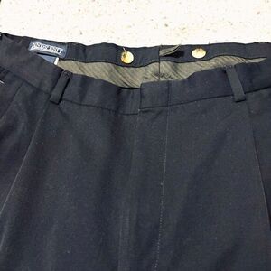 These Vintage Lands' End Pants in Navy Blue are a classic choice for men's formal or dressy occasions. Made in the USA with wool material, these pleated pants feature a mid-rise waist and straight leg style. The pants also include slash pockets, suspend buttons, and are lined for comfort. The timeless design and solid navy-blue color make these pants a versatile and stylish addition to any man's wardrobe, perfect for year-round wear.