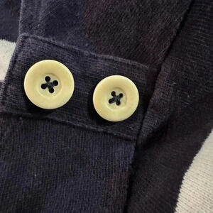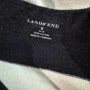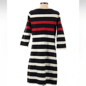 Lands’ End Vintage Red Blue Cream Striped Cotton 3/4 Sleeves Dress Size S Small