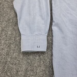 Special notes: Monogram "SJ" stitched on one cuff and handwritten name/marking on inside front placket near the hem.
