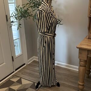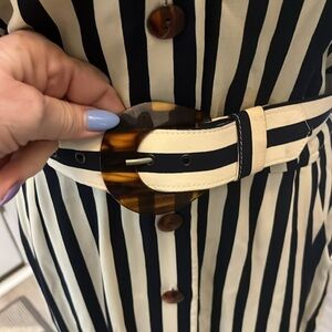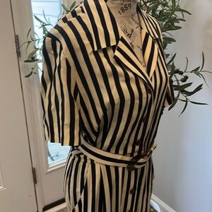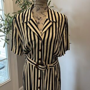 Vintage Land’s End Shirtdress Short Sleeves Striped Button Front Belt 1980’s