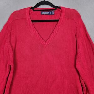 Vintage Lands End Sweater Mens Large Tall Red Drifter V Neck Knit Made USA 90s