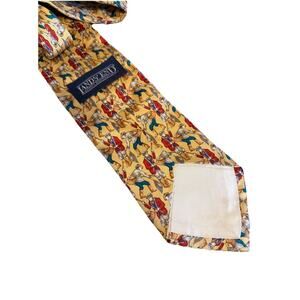 Vintage Lands End Tie Silk Blue Brown Fly Fishing USA Flies Trout Grandpa