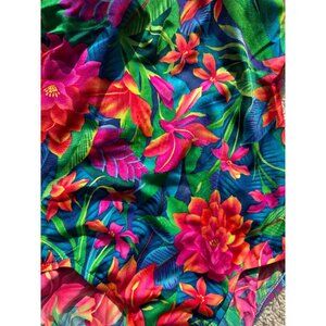 This vibrant one-piece swimsuit features a tropical floral design and built-in bra for support. Made with durable nylon and spandex for comfort and flexibility.