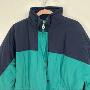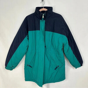 Vintage Lands’ End Women’s Size Large Winter Coat Thick Insulated Green Blue