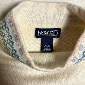 Vintage Lands' End Wool Angora Sweater Women's Large Cozy Cottage Fair Isle Y2K