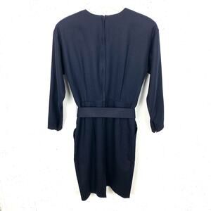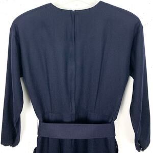 Vintage Lands End Wool Crewneck Dress Belted Knee Length Polyester Lined Skirt 8