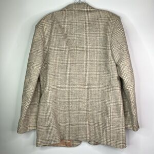 Vintage Lands' End Wool Gray Cream Blazer Jacket Size 14
