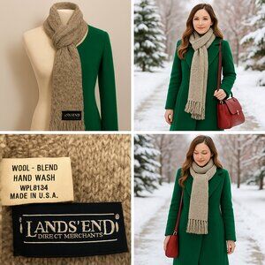 Vintage Lands’ End Wool-Blend Scarf w/ Fringe – Made in USA