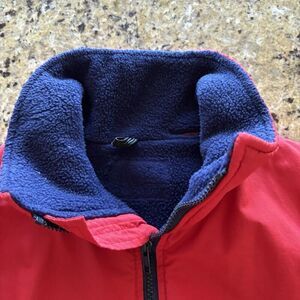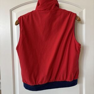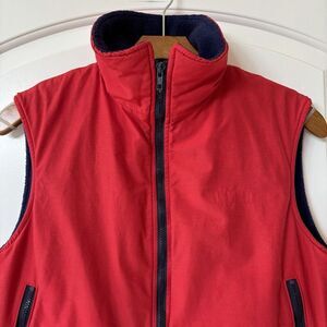 Vintage Lands' End Vest Men's Large Red Nylon + Blue Sherpa Fleece Full Zip USA