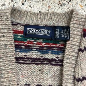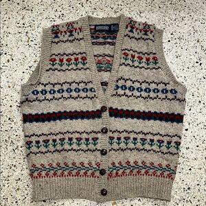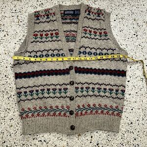EUC vintage Lands End wool sweater button vest leather buttons with extra included medium m ski fair isle