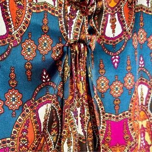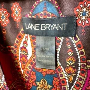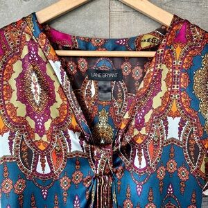 Vintage Lane Bryant Caftan Pattern Midi Dress Multicolor Poly Satin Tie 18/20