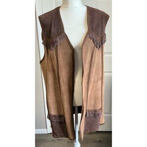 Vintage Lane Bryant Fringe Leather Front Vest XL Festival Western