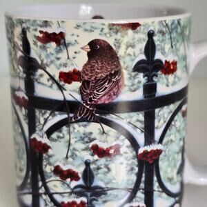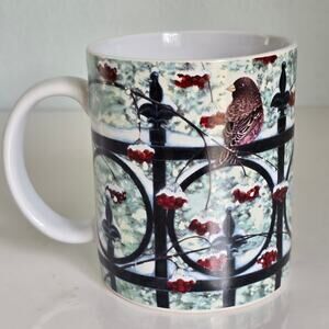 Vintage Lang Coffee Mug On The Fence Sparrow Berries Winter Scene Bird Lover