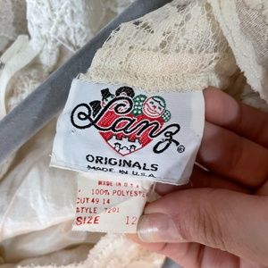 Add a touch of vintage elegance to your wardrobe with this Vintage Lang Originals lace midi dress. This adorable dress features beautiful lace detailing that exudes timeless charm.