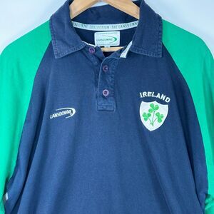 Vintage Lansdowne Ireland Rugby Polo Shirt Extra Large Navy Green Shamrock