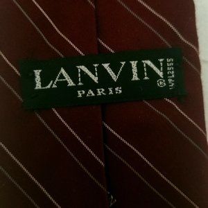 Vintage Lanvin Paris, burgundy with grey and cream pinstripes. Poly-silk blend. Excellent vintage condition.