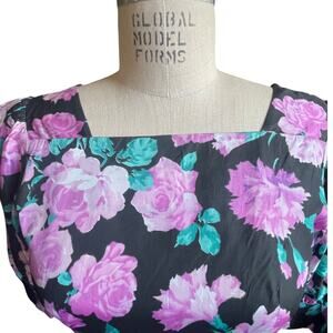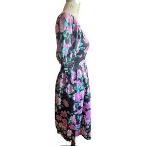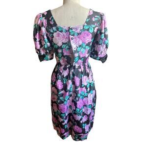 Vintage Lanz Originals Rose Print Taffeta Fit & Flare Cocktail Dress Size 4