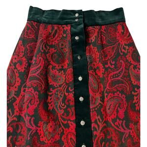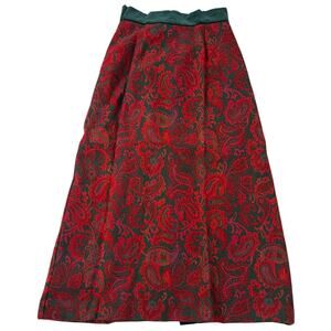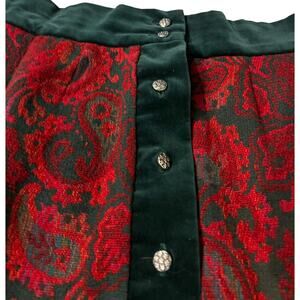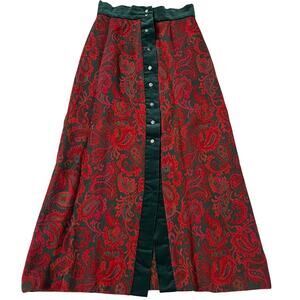 Vintage Lanz Skirt Long Paisley Brocade with Velvet Red Green Button Front Sz 13