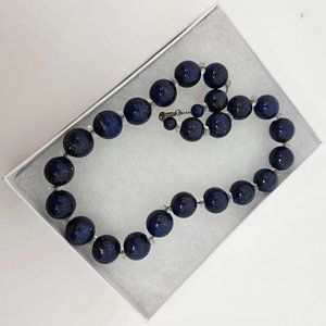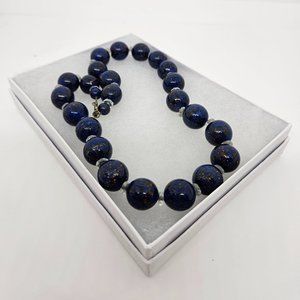 Vintage Lapis Blue/Clear 13-14MM Beaded 16" Necklace
