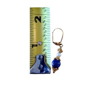 DETAILS: Add a touch of timeless elegance with these vintage drop earrings featuring deep cobalt-blue lapis lazuli paired with creamy white freshwater pearls. Designed in a graceful dangle/drop style, they bring both color and classic charm to any outfit.
