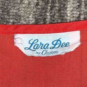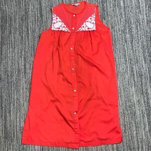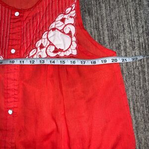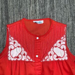Vintage Lara Dee Charm Women's M Red White Embroidered Button Down House Dress