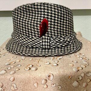 Vintage Larchmont Houndstooth Wool Fedora Hat w/ Red Feather – Size 7