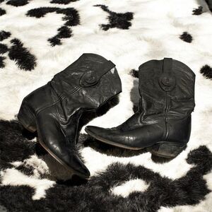 Vintage Laredo black leather suede pointed toe pull on cowboy western boots. Low heel.