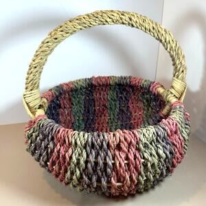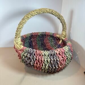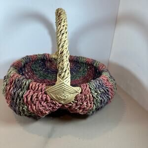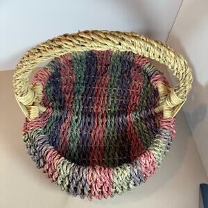Vintage Large 12" Woven Butt Basket Gathering Egg Buttocks Pink Purple Easter