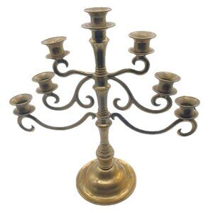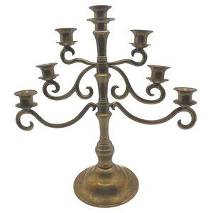 Vintage Large 16" X 16" Solid Brass Menorah Candelabra 7 Arm Candle Holder MCM