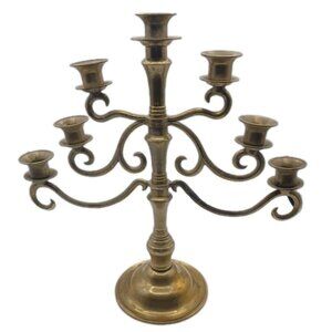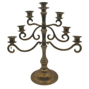 This striking vintage menorah tells a story of tradition and craftsmanship. Its solid brass structure and elegant 7-arm design radiate timeless beauty, making it a centerpiece for meaningful gatherings and rituals. With its robust build and intricate detailing, it encapsulates both heritage and artistry.