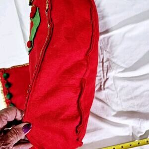 Vintage Large 22" Felt Pompoms Pixie Elf Christmas Stocking Tree Snowman 1960s