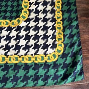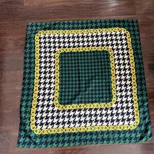 Vintage Large 34” Square Scarf Green Blue White Geometric pattern