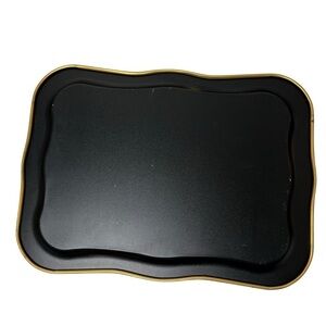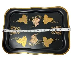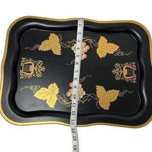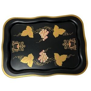 Vintage Large Black Floral Tole Metal Hand Painted Toleware Tray Gold Scrolls
