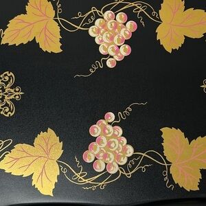 Antique, metal, TV, mid-century modern, MCM, 1950s, 1960s, T party, coffee, breakfast in bed, Airbnb, black, gold, leaves, grapes, Harp,