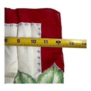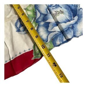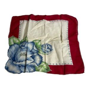 Vintage Large Blue Rose Red Border Victorian Handkerchief Flower Hankie READ