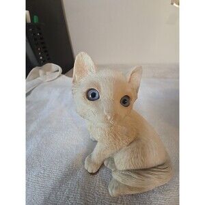 Vintage Large Cat Figurine Sandicast By Sandra Brue Blue Glass Eyes