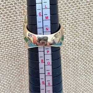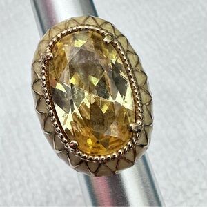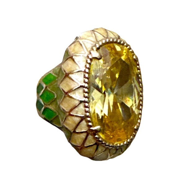 Vintage Big CZ Cocktail Ring Yellow Crystal Enamel Harlequin Mosaic Band