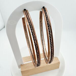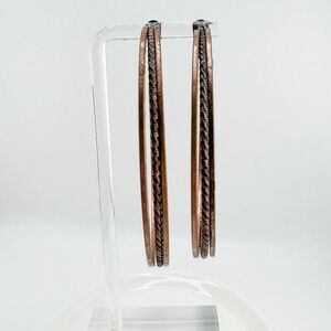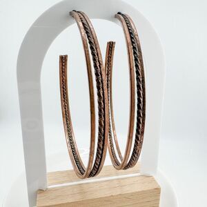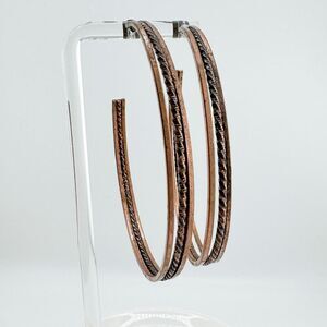 Vintage Large Copper Hoop Earrings Brutalist Statement Filigree Southwestern