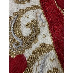 Vintage Large Dana Scott 80s Red White Gold Beaded Sweater Christmas Shiny