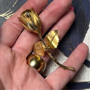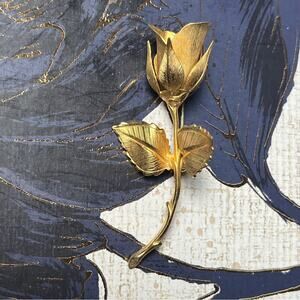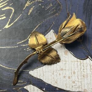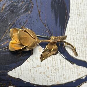 Welcome to the Bohemian Maven and thank you to both my new and long time customers for the ongoing support of my small business! You make it possible for me to continue hunting daily for unique treasures for you.Elegant gold rose brooch with intricate leaf details.