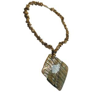 Vintage Large Diamond Shape Mother Of Pearl Natural Stone Silver Womens Necklace