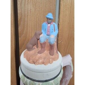 Vintage Large German Decorative Beer Stein 13" Handpainted With Man on Lid