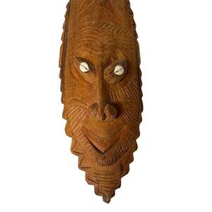 Papua New Guinea mask, tribal wall art, Oceanic decor, hand carved wood, wooden wall mask, shell eyes, ethnic mask, coastal decor, primitive art, boho tribal art, wall hanging, carved face mask, wooden mask, African-style decor, cultural artifact, indigenous carving, rustic