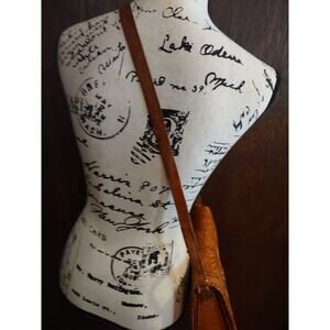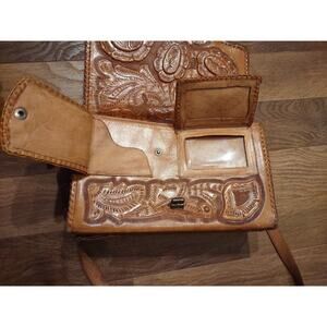 Vintage Large Leather Hand Tooled Brown Shoulder Bag Purse Tri fold Organizer
