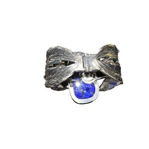 Enhance your vintage jewelry collection with this stunning Lucite bangle bracelet. The asymmetrical shape of this bracelet showcases a unique and beautiful design that will add character to any outfit. The blue main stone color complements the beauty of this bracelet, making it a perfect fit for any fashionista.