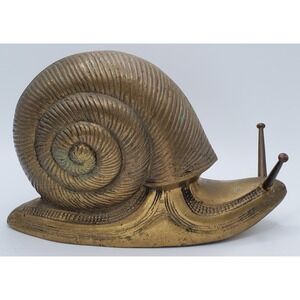 Vintage Large Brass Snail Figurine. Made in Korea. MCM Mid Century Modern. Matte brass. Has a beautiful patina. Cleaning is left to the buyer.
