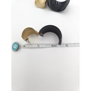 Vintage metal dangle statement earrings, measure approximately 2.5" long. Minor wear, including some discoloration at top of gold section. Please see pictures.